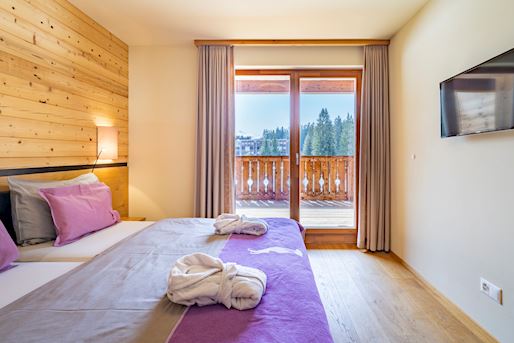 - Slaapkamer met 2-persoonsbed, 2-persoonssofttopper en flatscreen-tv