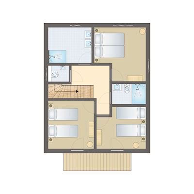 - Vier slaapkamers met twee 1-persoons boxsprings