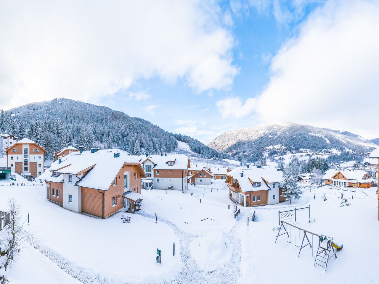 De World Cup-locatie, op een hoogte tussen 1100 en 2055 meter boven de zeespiegel, ligt aan de zonnige zuidkant van de Alpen. Het skigebied ligt direct bij het park, zodat je snel en comfortabel de piste op en af kunt. Meer dan 100 kilometer perfect geprepareerde pistes en 24 liften beloven volop afwisseling en plezier in het skigebied van Bad Kleinkirchheim.