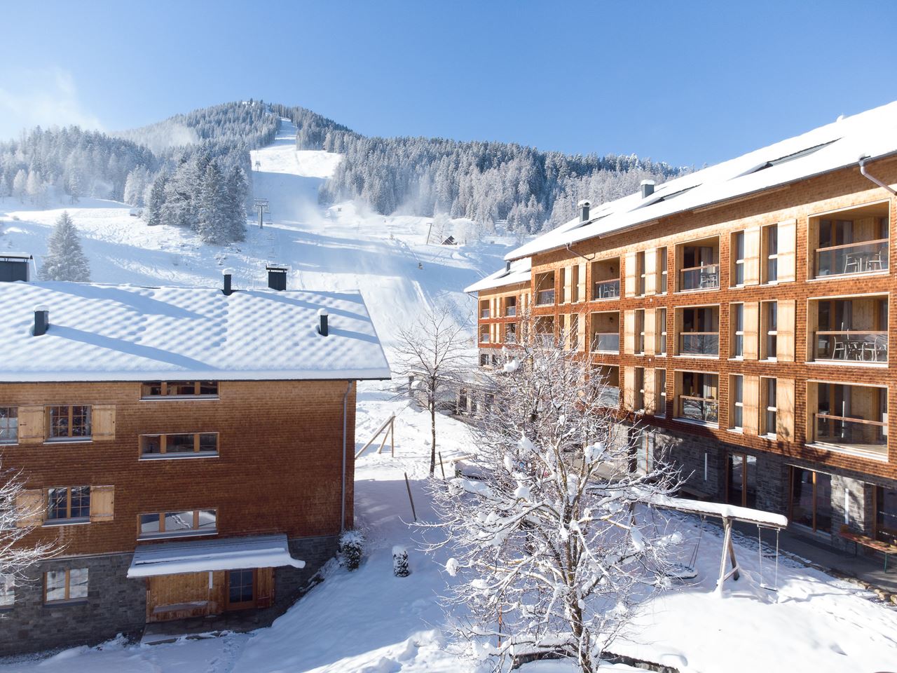 De kinderclub met Bollo de Beer, Kinder-Skiland, een overdekt zwembad en sauna met panoramisch uitzicht op de bergen – plezier en ontspanning voor het hele gezin! Landal Brandnertal ligt midden in het aantrekkelijke skigebied Brandnertal, direct bij de piste en bij het middelste bergstation van de kabelbaan. Zo hoef je nooit ver te gaan om lekker te skiën.