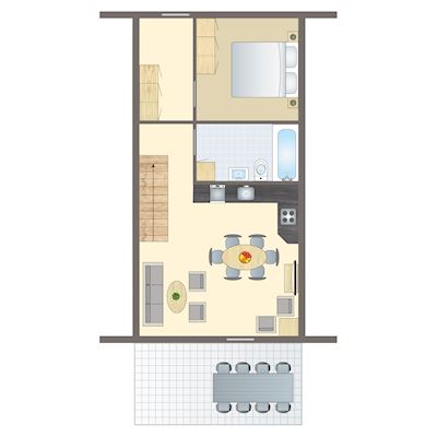 Dit type vakantiehuis is ingericht met een licht en vernieuwd interieur. Het vakantiehuis heeft een beschut terras op het zuiden waar je in alle rust kunt genieten. Het vakantiehuis is verdeeld over twee verdiepingen en heeft drie slaapkamers. De gecombineerde woonkamer en keuken creëren een geschikte setting voor familiebijeenkomsten. De vakantiehuizen zijn privébezit, daarom zijn beschrijvingen, foto's, specificaties en plattegronden van de vakantiehuizen indicatief en kunnen ze afwijken.