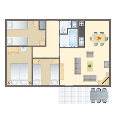 - Per slaapaccommodatie twee slaapkamers met twee 1-persoons boxsprings