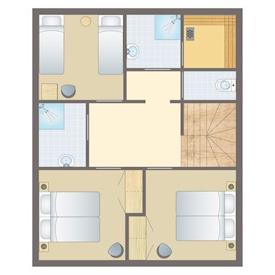 - Drie slaapkamers met twee 1-persoons boxsprings in het souterrain