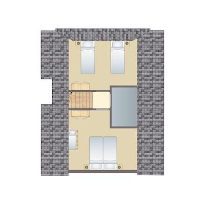 - Twee slaapkamers met twee 1-persoons boxsprings