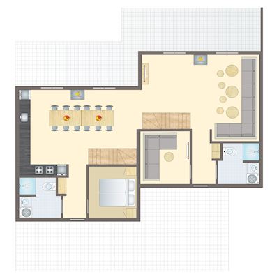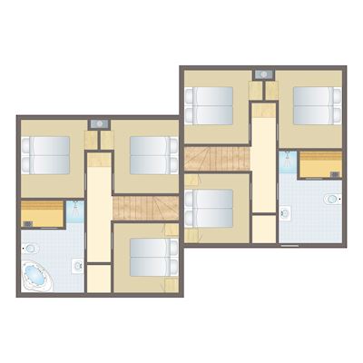 Mooie en ruime vakantiewoning met twee verdiepingen en voldoende ruimte voor familie en vrienden. Op de begane grond bevindt zich de fraaie open keuken met eethoek, die in verbinding staat met de woonkamer met houtkachel en toegang tot het terras. Er is één slaapkamer met een tweepersoonsbed en twee badkamers, waarvan één met wasmachine en droger op de begane grond. Op de eerste verdieping zijn er 6 slaapkamers met tweepersoonsbedden en twee badkamers, waarvan 1 met een bubbelbad en sauna. De vakantiehuizen zijn particulier eigendom, daarom zijn beschrijvingen, foto's, specificaties en plattegronden van de vakantiehuizen indicatief en kunnen variëren.