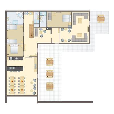 Een mooi en zeer ruim vakantiehuis met ruimte voor maximaal 22 personen. Het huis is praktisch ontworpen met oog voor detail. Er is nagedacht over de grootte van de slaapkamers en badkamers, waardoor het huis ideaal is voor verschillende doeleinden. Denk aan familiereünies, teambuilding voor bedrijven of schoolkampen. De vakantiehuizen zijn privébezit, daarom zijn beschrijvingen, afbeeldingen, specificaties en plattegronden van de vakantiehuizen indicatief en kunnen ze afwijken.