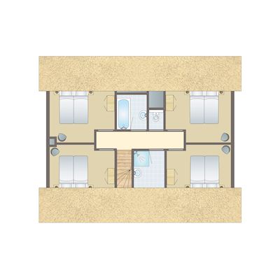 • Vier slaapkamers met twee 1-persoons boxsprings op de eerste verdieping