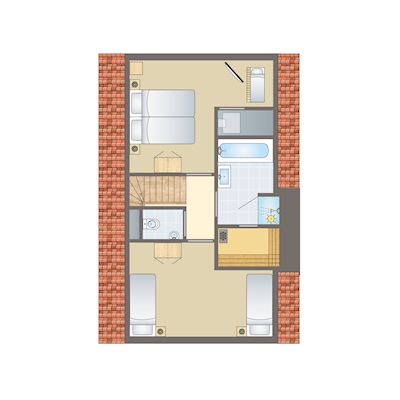 • Slaapkamer met twee 1-persoons boxsprings op de eerste verdieping